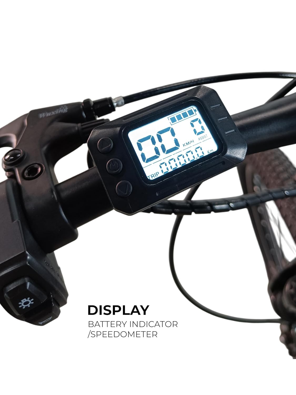 • Throttle with Display: Smart throttle integrated with digital display for easy acceleration, real-time speed, and battery status monitoring.